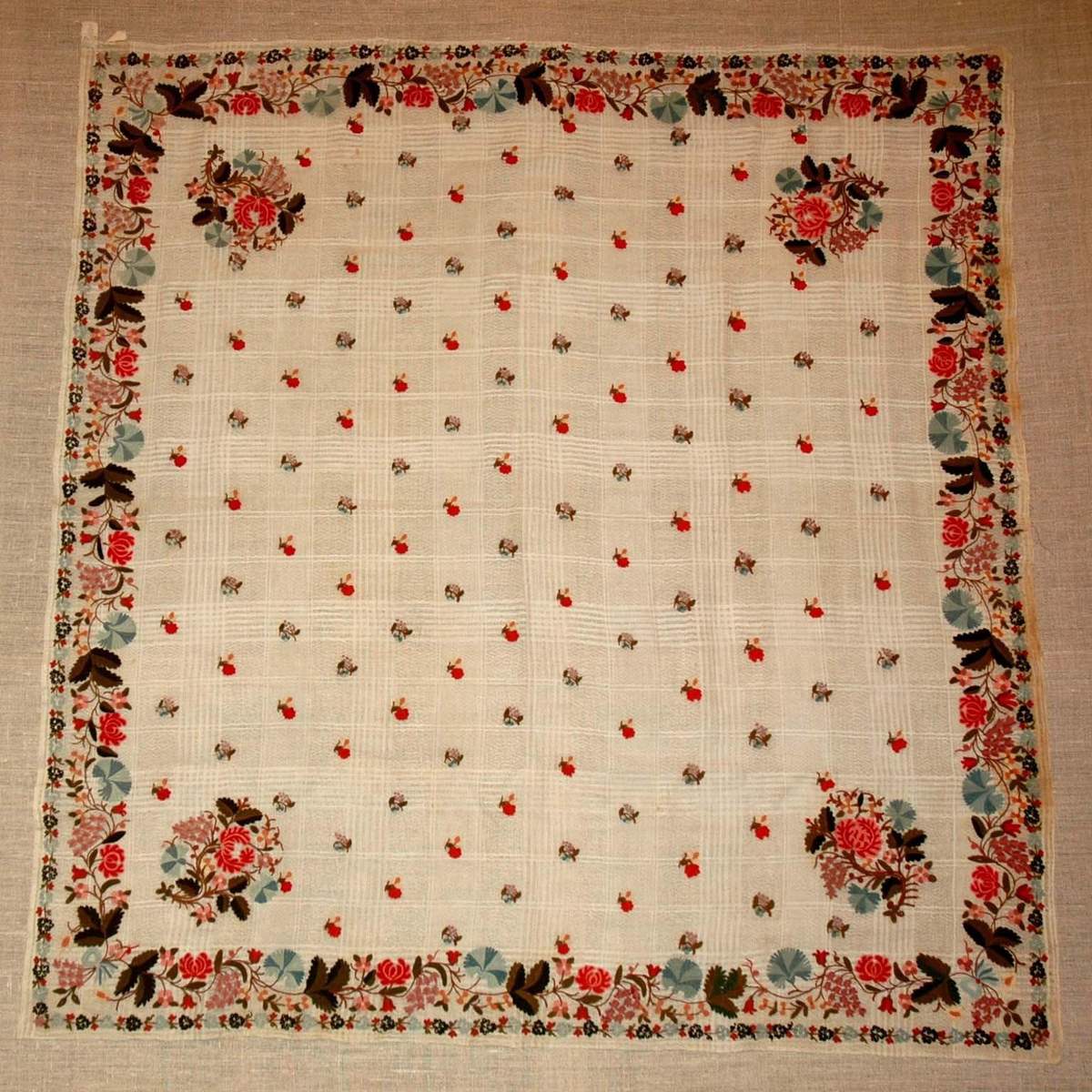 - Вышивка тамбуром шерстяными нитями по кисее. 99 х 104
