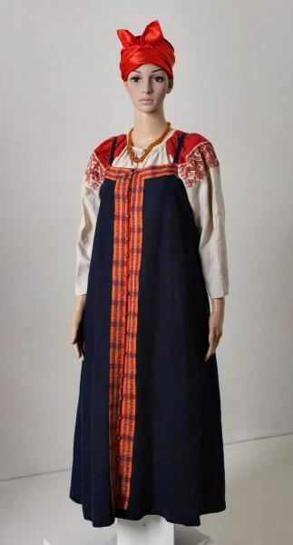 «Синяком» на Севере называли сарафан из гладкоокрашенной ткани, обычно льняного полотна домашнего производства, темно-синего цвета. По покрою «синяк» близок старинным косоклинным распашным сарафанам. Однако застежку зашивали или имитировали две полушелковые ленты и ряд белых пуговиц. Во всех ты, душенька, нарядах хороша. Традиционный праздничный костюм XVIII — XX веков. СПБ, 2015. С. 118.