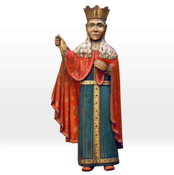 - Wood, tempera, carving. 75,5 × 32,8 × 11