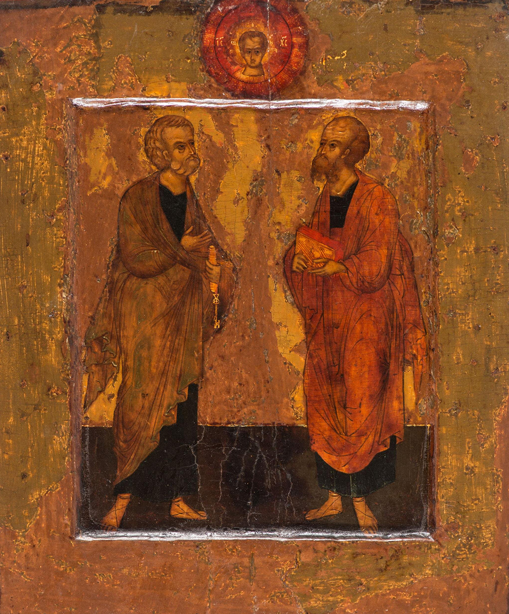 Согласно церковному преданию, святые первоверховные апостолы Пётр и Павел приняли святое мученичество в один день — 29 июня по юлианскому календарю.. Апостол Пётр был распят головой вниз, апостол же Павел, как римский гражданин, не мог быть казнён на кресте, и ему отсекли голову. Почитание святых апостолов Петра и Павла началось сразу же после их казни. Место их погребения было священно для первых христиан. В IV веке святым равноапостольным Константином Великим были воздвигнуты храмы в честь святых первоверховных апостолов в Риме и Константинополе. Совместное их празднование — 29 июня (ст. ст.) — было сильно распространено уже в первые века христианства. В Русской Церкви почитание апостолов Петра и Павла получило начало после Крещения Руси. По церковному преданию, святой равноапостольный князь Владимир привез из Корсуни икону святых апостолов Петра и Павла, которая впоследствии была преподнесена в дар Новгородскому Софийскому собору. В честь святых апостолов Петра и Павла в XII-XIII веках были воздвигнуты монастыри в Новгороде, Ростове, Брянске. Изображения святых апостолов Петра и Павла в иконостасе православного храма стали неизменной принадлежностью деисусного чина. Особенно известны иконы первоверховных апостолов Петра и Павла, написанные Андреем Рублевым.
