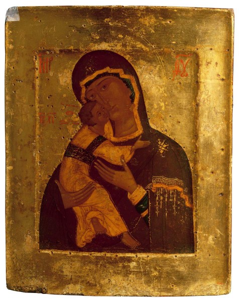 Памятник из Покровского монастыря пленяет внутренней гармонией, особой тишиной и покоем. Состояние умиротворенности и глубокой созерцательности в лике Богородицы сочетается с трогательной порывистостью младенца Христа. Образ написан традиционно на золотом фоне. Теплые, сближенные по тону цвета, плавная линия силуэта, идеально вписанного в пространство средника, изысканный колорит отвечают духовному содержанию образа. Мария Федосеева // «Пречистому образу Твоему поклоняемся...». Образ Богоматери в произведениях из собрания Русского музея. СПб. 1995. С. 155.