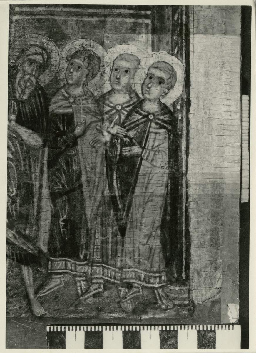 Раскрытие иконы производилось слабым раствором эмульсии (спирт + скипидар); сгустки олифы утоньшались более концентрированным раствором. Участки со старой олифой и записи удалялись под микроскопом микроскальпелем. На вставке по стыку досок оставлены записи, на потертостях и в местах утрат красочного слоя – тонкая пленка олифы. На нижнем поле сохранена поздняя вставка. Утраты вдоль нижнего края и по углам иконы замастикованы и тонированы акварелью. Икона покрыта тонким слоем мастичного лака.