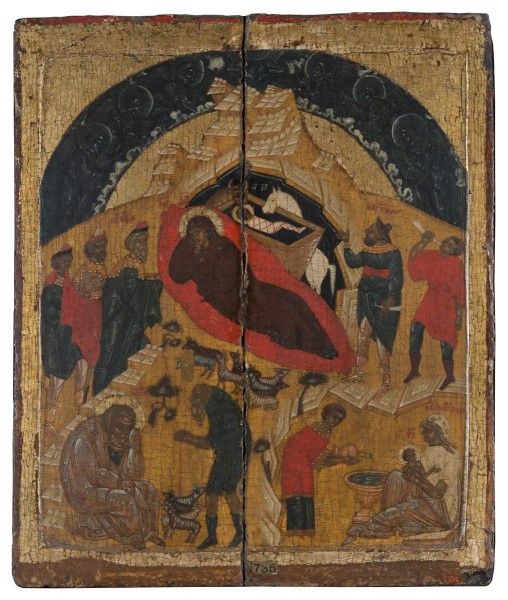 Иконография «Рождества Христова» сложилась на основе текстов о рождении Христа Девой Марией, содержащихся в евангелиях (Мф. 1, 18–23; Лк. 2, 1–7), Протоевангелия Иакова, а также текстов Рождественской службы и некоторых апокрифических сочинений. Иисус Христос. СПб, 2000. С. 47.
