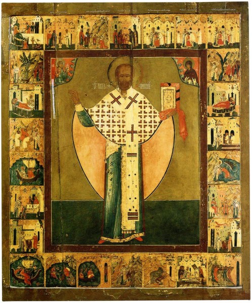 Византийский святой Николай (?–345), епископ города Миры в Ликии, стал самым почитаемым святым Русской церкви. Ему посвящено множество легенд, сказаний, духовных стихов. В них он выступает скорым помощником в самых разных бедах, хранителем плавающих и путешествующих. Он «всех предстатель и заступник, всех скорбных утешитель, всех сущих в бедах прибежище, благочестия столп, верных поборник». Со святым Николой связывали надежды на помощь после смерти. Татьяна Вилинбахова. В земле Российской просиявшие // Электронный каталог «Святые земли русской». СПб. 2010. С. 6.