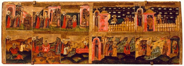 1. Взятие под стражу святой Софии с дочерьми; 2.Мученицы перед нечестивым царем Дарием; 3.Мучения святой Веры; 4. Мучения святой Надежды; 5. Мучения святой Любови; 6. Святая София у гроба дочерей.
