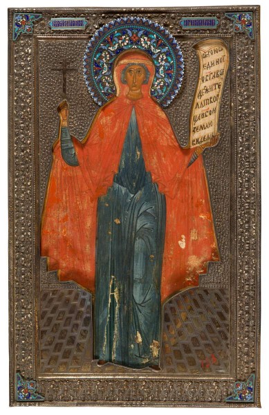 - Wood, gesso, silver, tempera, финифть, chasing. 73,0 х 45,0
