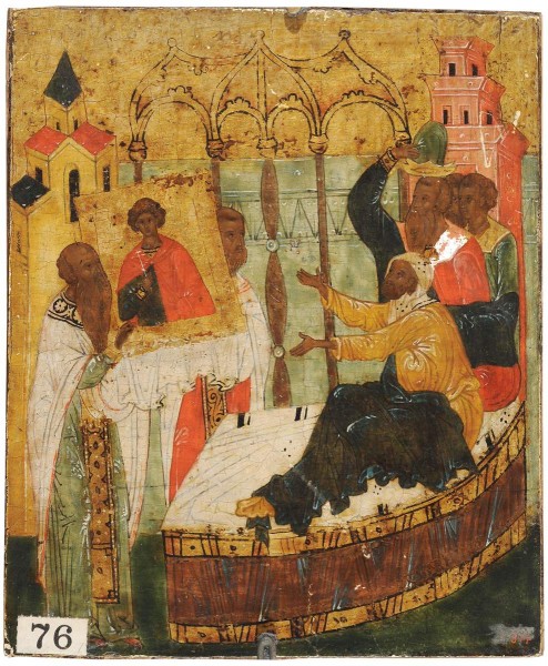 • Происходит из местного ряда церкви Сретения (Иоанна Лествичника) монастыря Антония Римлянина в Новгороде