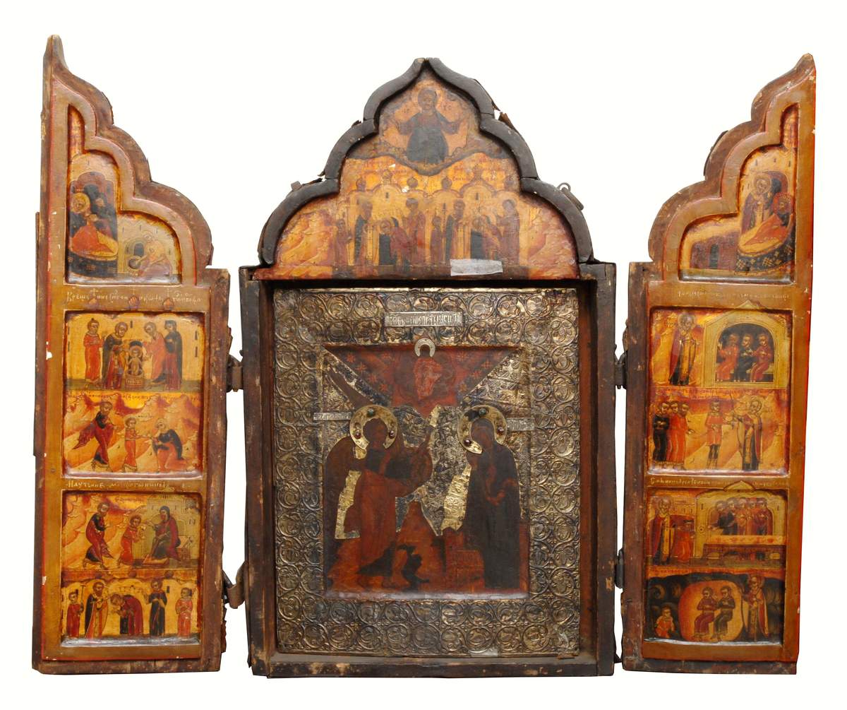 Кузов с иконой «Благовещение» и житием Николы на створках