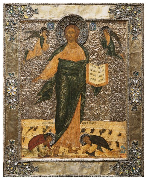 Оклад с накладными венчиками и пластинами: серебро; чеканка, скань, эмаль. XVI век. Оклад: начало ХХ века