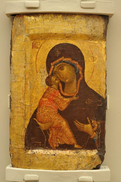 В иконе в полной мере достигнута та высокая и совершенная духовная красота и просветленность духа, когда «ум и мысль возносятся к невещественному Божественному свету» и «светлостью наполняются» (Иосиф Волоцкий). Поразительная по тонкости своего исполнения и художественному воплощению, «Богоматерь Владимирская» относится к числу самых совершенных произведений древнерусской живописи. Выразительность ее изобразительного языка, манера исполнения личного письма, особый ритмический строй, мотив плавного кругового движения, хрупкость и лиризм образа позволяют рассматривать икону среди произведений рублевского круга, созданных в начале XV в. Не исключено, что она была написана русским мастером, работавшим за пределами Руси, например, на Афоне, о чем свидетельствуют характерные особенности ее доски. «Монашеский» вариант искусства начала XV в. проявился и в образном строе памятника, в котором безмолвие и самопогруженность Марии напоминают об иноческом пути к совершенству и обожению. Ирина Шалина // «Пречистому образу Твоему поклоняемся...». Образ Богоматери в произведениях из собрания Русского музея. СПб. 1995. С. 153.