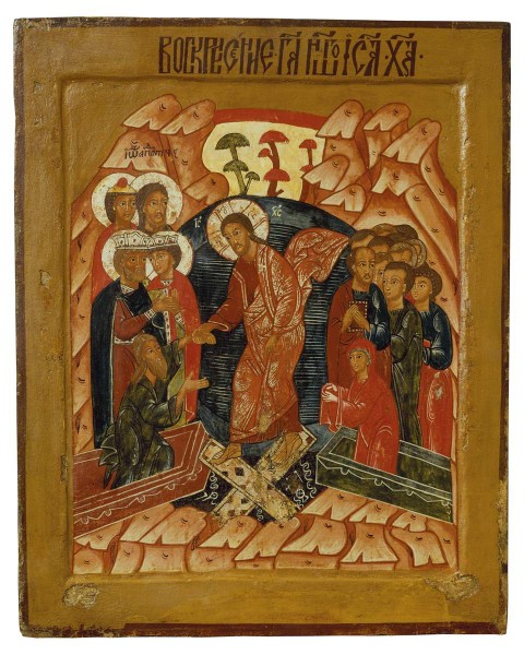 Изображение Града Небесного на иконах «Воскресение — Сошествие во ад» появляется не ранее второй половины XVI века, вероятно в кругу столичных иконописцев. К концу XVII столетия на иконах Поволжья и Вологды в результате дальнейшего развития и усложнения иконографии оно переместилось в верхний правый угол средника. Это свидетельствует о том, что иконографические новшества проникали в далекие северные районы с отставанием.