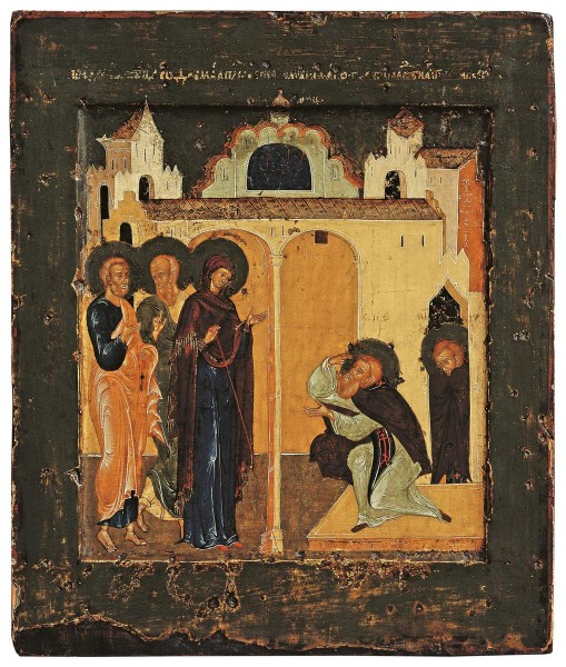 Главная Онлайн ресурсыКоллекцияДревнерусская живопись Явление Богоматери преподобному Сергию Радонежскому Явление Богоматери преподобному Сергию Радонежскому Середина XVII века Дерево, темпера. 31,7 × 27 × 2,1 ДРЖ-955 Пост. в 1913 от братьев Чириковых (доставлена М. И. Чириковым) Период XVII век КатегорияБиблейский / религиозный сюжет Ключевые слова Дева Мария (Богоматерь) | Сергий Радонежский, преподобный | Древлехранилище Участие в виртуальных выставках и 3D-турах Древлехранилище памятников иконописи и церковной старины в Русском музее«Пречистому образу Твоему поклоняемся...» Поделиться «Виртуальный Русский музей» в социальных сетях:
