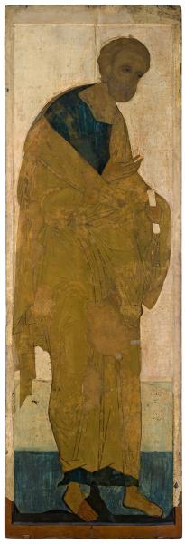 Вопрос об авторской принадлежности икон, составляющих иконостас Успенского собора, очень сложен. Подобно всем средневековым мастерам, Андрей Рублев и Даниил Черный работали с артелью, или, как ее чаще называли в Древней Руси, дружиной. Такой метод работы был обусловлен и большими размерами заказа. Обращает на себя внимание неравноценность исполнения двух рассматриваемых деисусных икон. Плохая сохранность первоначальной живописи не позволяет судить о колорите иконы апостола Петра, но заметно слабее ее линейный ритм, грубоваты и тяжелы пропорции. Уступает она иконе апостола Павла и в психологической выразительности. Скорее всего «Апостол Петр» был написан кем-либо из мастерской Андрея Рублева. Большое внимание уделено силуэту. В начале XV века в московской живописи сложился тот чисто иконописный стиль, основой которого стала линия, приобретающая огромное значение не только в пластической трактовке фигуры, но и в передаче внутреннего состояния. Плавность, особая музыкальная ритмичность и выразительность силуэта в высшей степени присущи искусству Андрея Рублева и мастеров его круга.
