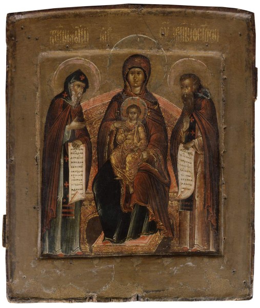 Богоматерь на престоле, с предстоящими святыми Антонием и Феодосием Печерскими (Богоматерь Печерская)