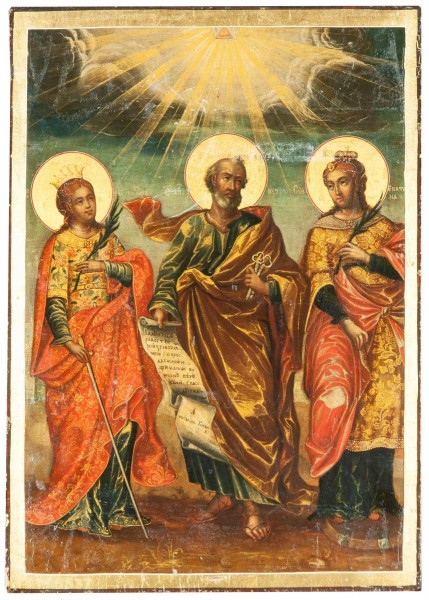Избранные святые: св. Варвара, апостол Петр и св. Екатерина