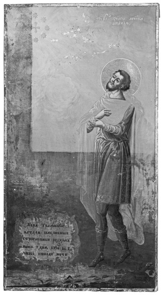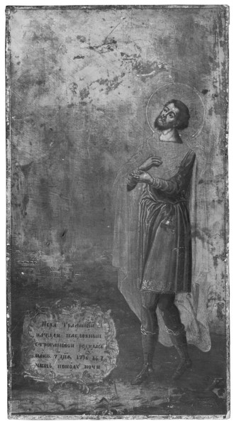 Удалены поверхностные загрязнения. Исследования под микроскопом МБС-10 и в УФ-лучах выявили два слоя лака на поверхности изображения, верхний слой – толстый, неравномерный, желтого цвета. Утоньшение и выравнивание лаковой пленки проводилось под микроскопом с использованием микротампонов с эмульсией (спирт + пинен). В места утрат подведен реставрационный грунт, выполнены тонировки акварелью. Поверхность иконы покрыта реставрационным лаком. Выполнено полное раскрытие.