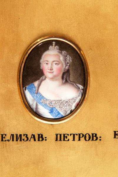 Empress Elizabeth I Petrovna (1709–1761) was the daughter of Peter the Great and Catherine Alexeyevna, née Marta Skowrońska. She was considered illegitimate, but after the official wedding of her parents in 1712 she began to bear the title of Tsesarevna. Later on this detail of her biography would prevent her from marrying a European prince. She ascended to the throne on 25 November 1741 following a palace coup carried out with the support of the Guards. She waged successful wars against Sweden (1741–1743) and Prussia (the Seven Years’ War, 1756–1763). Her domestic policies were marked by an extension in the rights of the gentry to own land and peasants, but at the same time the death penalty was abolished (1756) and the use of torture was reduced. Elizabeth was famous for her beauty, her merry disposition and her love of luxury and entertainment; her wardrobe contained as many as 12,000 dresses. The tastes of the Empress and her favourites helped the development of art and enlightenment. The network of primary schools in Russia was enlarged, military training schools were reorganised and the first grammar schools were opened. Moscow University was founded in 1755, and the Academy of Arts opened its doors in St Petersburg in 1757. The capital and its environs were decorated with magnificent palaces and churches in the baroque style. The Empress probably had no children, but she was possibly secretly married to Count Alexei Razumovsky, whom she had raised from among the court choristers.