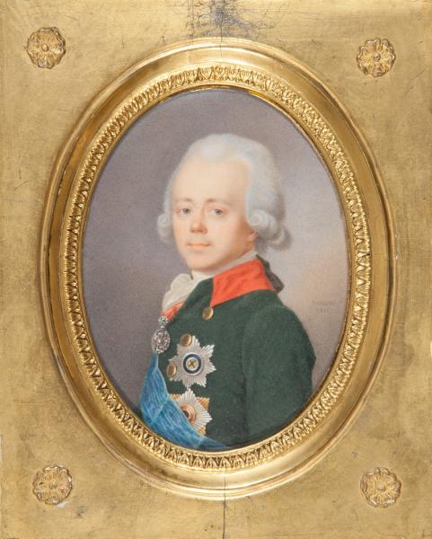 Павел I Петрович (20 сентября / 1 октября 1754, Санкт-Петербург − 12/24 марта 1801, Санкт-Петербург) − Единственный сын императора Петра III и императрицы Екатерины II. В 1762 году был объявлен наследником престола с титулом цесаревича. Получил блестящее образование, романтически верил в идеалы просвещенного абсолютизма, но критически относился к политике Екатерины II. На протяжении десятилетий томился в ожидании власти, узурпированной матерью. С 1796 года – император. Стремился к благу государства, но нередко действовал вопреки здравому смыслу. В 1797 году во время коронации в Москве обнародовал указ «Учреждение об императорской фамилии», устанавливавший наследование престола по праву первородства в мужском колене. Реформировал местное управление. Сузил права дворянства, допустив для него телесные наказания. Военные реформы коснулись не только обмундирования и вооружения, но и обучения, тактики офицеров и солдат. Ориентировался на прусскую военную систему. Стремясь уберечь Россию от революционных идей, запретил ввоз книг из Франции и ужесточил цезуру для русских изданий. В 1798 году принял титул Великого магистра ордена Святого Иоанна Иерусалимского (Ордена госпитальеров), взяв его под свое покровительство. В ночь с 11 на 12 марта 1801 года был убит заговорщиками в Михайловском замке, а по официальной версии – скончался от апоплексического удара (паралич).