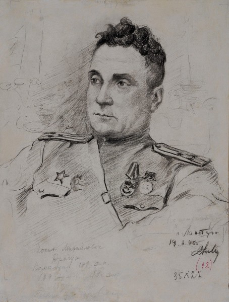 Рисунок создан 19 марта 1945 года, в тот период, когда Иосиф Михайлович Драгун был командиром 109 стрелкового полка 189 стрелковой дивизии.