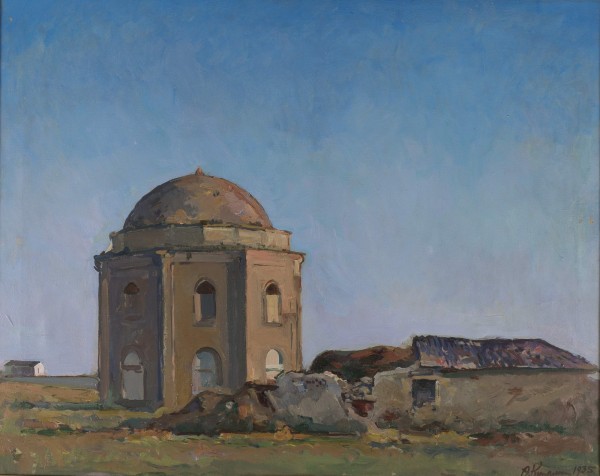На холсте, исполненном во второй бахчисарайский период творчества художника, изображена восьмиугольная гробница с куполообразной крышей – дюрбе Диляры-бикеч, расположенная за Южными воротами Дворца, на краю садовых террас. Мавзолей был построен в 1764 г. посреди небольшого кладбища. Как полагают, знаменитый «Фонтан слез» был перенесен именно отсюда в Фонтанный дворик Хансарая после 1783 г. Существует местное предание о «Фонтане слез», построенном Кырымом Гераем в знак безутешной скорби по любимой супруге Диляре, отравленной ревнивыми соперницами.