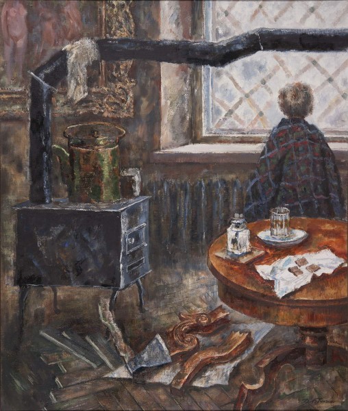 Картина «Остался один» входит в число наиболее известных произведений автора. Написанная почти через 30 лет после Великой Отечественной войны, она поражает эмоциональной силой воспоминаний, которые художник сохранил в своей памяти. В юности Д.П.Бучкин испытал все тяготы блокадной зимы. Вместе со сверстниками он тушил зажигательные бомбы, защищая дома от бомбёжек, относил в подвалы художественные ценности. Вспоминая эти годы, он говорил о том, что выжить помогло увлечение рисованием. На обороте холста в текст названия картины была внесена авторская надпись: «Блокадная квартира Рубинштейна, д.25».