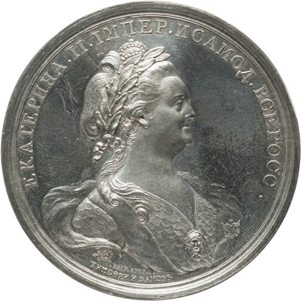 Медаль «Слава России» была учреждена 8 августа 1785 г. повелением императрицы Екатерины II. В некоторых изданиях название этой медали приводится как «Медаль на учреждение Черноморского флота» или «Медаль для старшин Североамериканских племен». Данными медалями награждали представителей народов, населявших Чукотку, Алеутские острова и Аляску. Медали чеканили с ушками, которые носились на шее на цепочке, а также без ушек. Всего было выдано 27 золотых, 138 серебряных и 32 медных медалей.