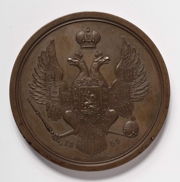На лицевой стороне - Российский герб (Николай I не поддержал размещение его портрета на этой медали). На оборотной стороне планировалось размещение изображений М.В. Ломоносова и И.И. Шувалова, подносящих императрице Елизавете Петровне Устав Московского университета.
