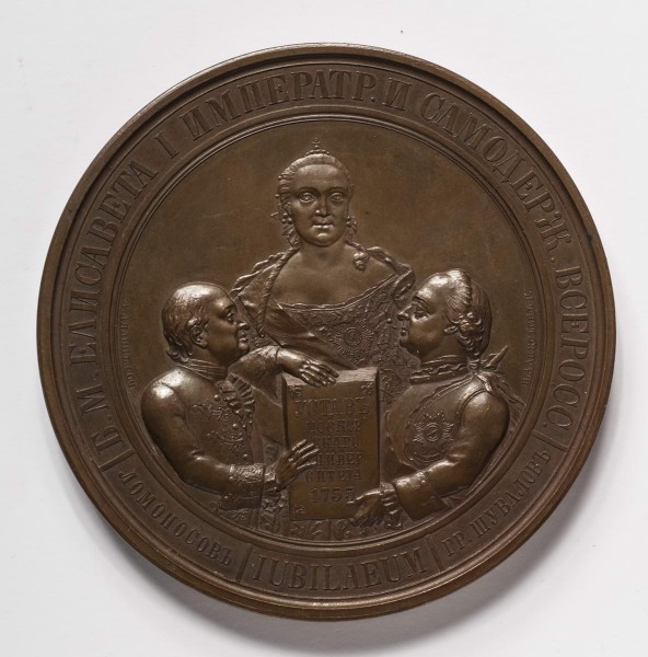 Московский университет – первый университет в России, один из центров отечественной и мировой науки – был основан по инициативе и плану М.В.Ломоносова. Указ Императрицы Елизаветы Петровны об учреждении университета (по докладу И.И.Шувалова Сенату), был подписан в день памяти св. мученицы Татианы 12 января 1755 года по старому стилю (25 января по новому). Однако с портретом Шувалова на медали вышла путаница. Иван Иванович Шувалов (1727–1797), занимая исключительное положение при дворе императрицы Елизаветы Петровны, отказался принять графский титул. Графом был его родственник Пётр Иванович Шувалов (1710–1762), министр и председатель Военной коллегии. Но на медали изображён действительно граф П.И. Шувалов, не имевший никакого отношения к Московскому университету, т.к. к медальеру А.П.Лялину, которому было поручено изготовление проектного рисунка медали, поступило утверждённое императором описание, где чёрным по белому значился граф Шувалов. Поскольку инициалы этого графа в описании указаны не были, он скопировал изображение именно графа Шувалова с известной ему медали работы Ж.А. Дасье, а медальер В.В. Алексеев воспроизвёл его в металле.