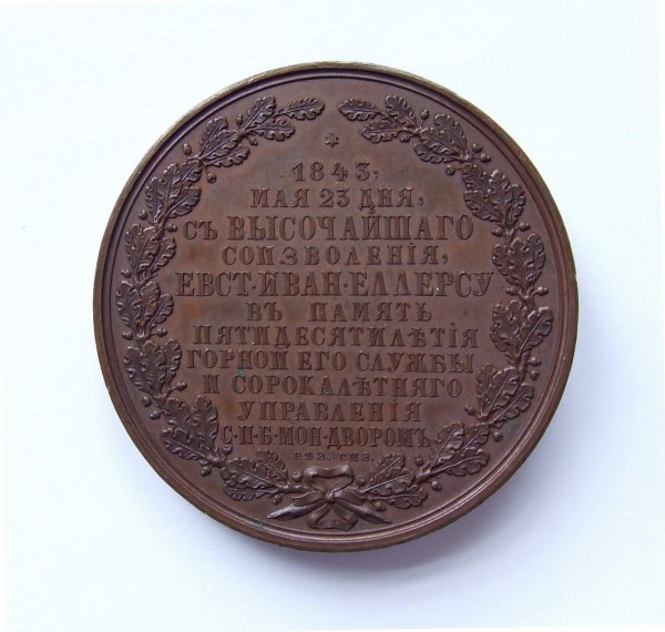 Медаль на 50-летие службы и 40-летия нахождения в должности директора С.-Петербургского Монетного двора генерала Е. И. Еллерса