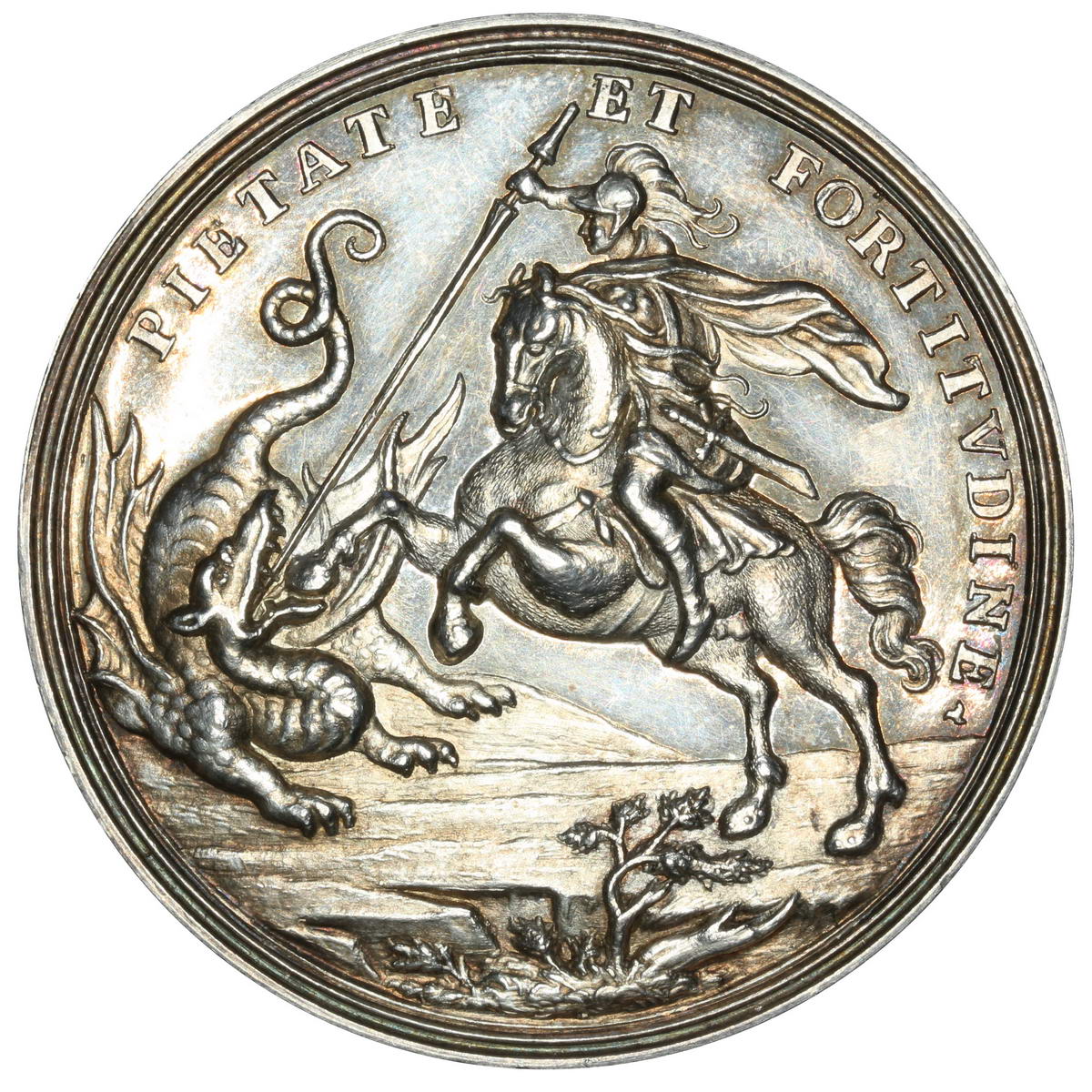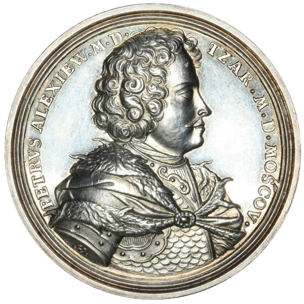 Just like his fellow craftsman Philipp Heinrich Müller, the Nuremberg medallist Georg Hautsch (1659–1745) worked for many of the European courts. For instance, he made medals commemorating the victory of Charles XII. After the Battle of Poltava took place, he received an order from Peter the Great and produced medals commemorating the victory of the Russian army as well.