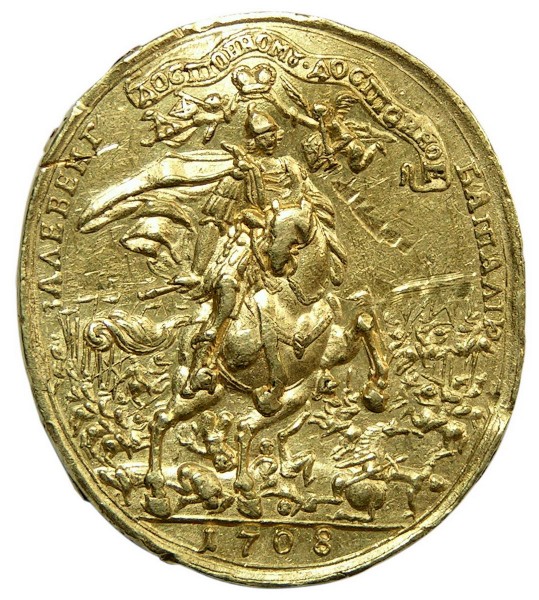 1140 medals of different value were distributed to commemorate the victory at Lesnaya. Military officers received oval and round gold medals (from 3.5 to 40 g). Those with lower ranks were awarded silver medals.