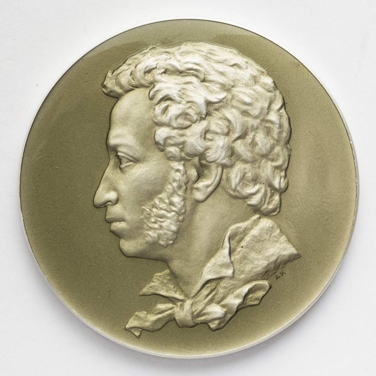 В начале 1960-х годов ленинградским медальером А. В. Козловым была исполнена великолепная по красоте и изысканности сюита из трех медалей в честь А. С. Пушкина. На лицевой стороне всех медалей помещен портрет поэта, на оборотной стороне одной медали – изображение «скамьи Онегина» в селе Тригорском; на обороте другой – изображением липовой аллеи в селе Михайловском, а на третьей – изображением могилы великого поэта. «Он победил и время и пространство...». К 225-летию со дня рождения А. С. Пушкина. СПб, 2024. С. 215.