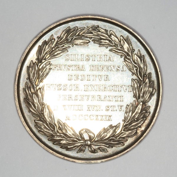 18 июня 1829 года русские войска под командованием графа Ивана Дибича овладели важной турецкой крепостью Силистрия в Болгарии. В 1830 году в берлинской медальерной мастерской Д. Лооса была выполнена серия медалей на главные события русско-турецкой войны 1828–1829 годов.
