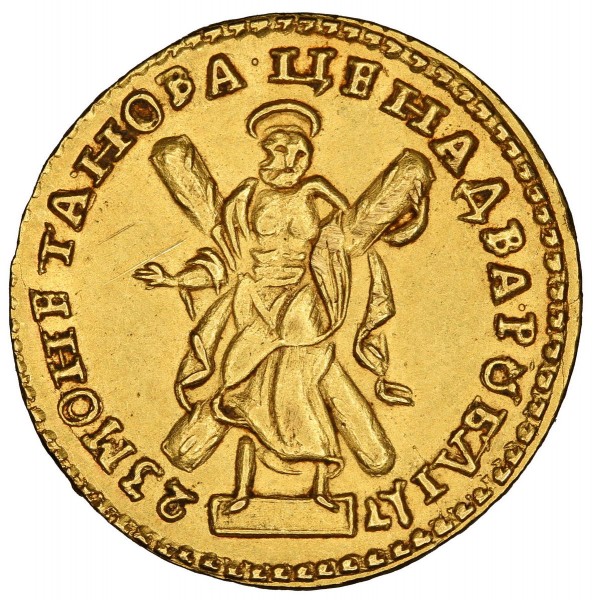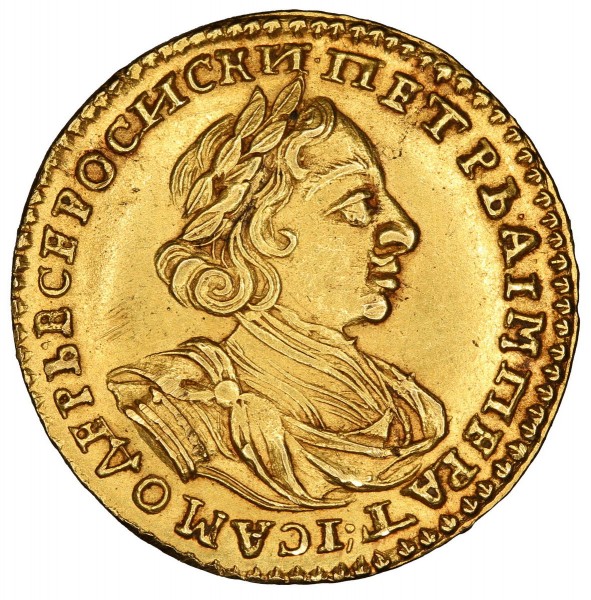 The first Russian gold coin, which had the purity and the weight of the Hungarian ducat, chervonets, was produced during the monetary reform of Peter the Great that took place in 1701–1716. In 1718, craftsmen switched to the production of two rouble coins that were less pure, but heavier. All those gold coins were made of imported gold.