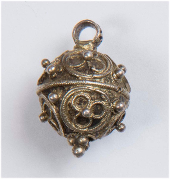 Серебро; штамповка, скань, зернь, пайка. 3,2 × 2,2