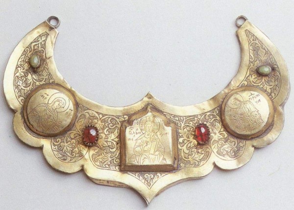 Цата представляет собой редко встречающийся образец украшения с фигурной композицией «Деисус». Форма цаты — с многолепестковым контуром и килевидными завершениями — характерна для цат XVII в. Расположение орнамента вокруг дробниц с трехфигурным деисусом указывает на изначальность всей композиции. Фигуры поясного деисуса (Христос, Богоматерь и Иоанн Предтеча) с небольшими головами, мягкими очертаниями, простоватыми ликами и динамичным рисунком складок позволяют отнести памятник к XVII в. О том же говорит исполненный на канфаренном фоне орнамент «трав разметных» и палеография надписей по сторонам от фигур. Светлана Новаковская-Бухман // «Пречистому образу Твоему поклоняемся...». Образ Богоматери в произведениях из собрания Русского музея. СПб. 1995. С. 331.