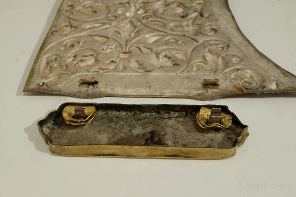- Silver, wood, emeralds, sapphire, rock crystal, forging, chasing, casting, gilding. 214,5 × 80,7