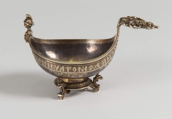 Сходные по назначению чарки и корчики XVII века имели близкую форму в виде глубокой маленькой чаши (у корчика — вытянутой формы, как у ладьи). Одинаков у них круглый, типа перевернутого блюдца поддон, украшенный широко распространенным в европейской и древнерусской утвари XVII века бордюром из декоративных полуовалов — овов, а также литые фигурные ножки в виде грифонов с уходящим под чашу волютообразным завитком; перекликается орнаментация: трехлопастные «спуски» с килевидным выступом, украшающие чаши снаружи. Это говорит о появлении сосудов в близкое время и в одном центре.