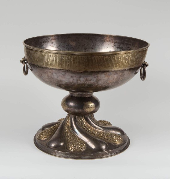 • Серебро, ковка, чеканка, гравировка, золочение. В. — 34; дм чаши — 45; дм основания — 38