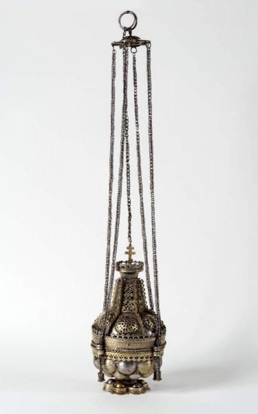 Home page Online resourcesCollectionsOld Russian Decorative and Applied Art Кадило Кадило Муром (?). 1647 Silver, chasing, casting, carving, gilding. 26,6 × 15,1 БК-3059 Пост. в 1912, привезено П. И. Нерадовским Происходит из Благовещенского монастыря в Муроме Period Old Russian Art Typology / subtypeJewelry Keywords The Epoch of Alexis Mikhailovich (1645-1676) | The Ancient Repository | objects of the Liturgy Virtual exhibitions and 3d-tours The Autumn of Russia’s Middle Ages Share «Виртуальный Русский музей» в социальных сетях: