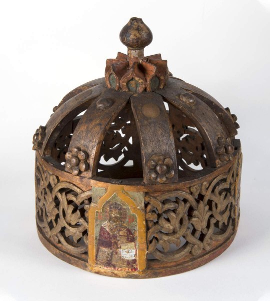 - Дерево, левкас, резьба, золочение, серебрение. В.: 23,5; дм: 20