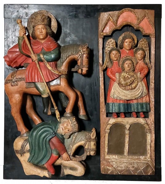 Изображения Св. Димитрия Солунского — одного из наиболее чтимых византийских воинов-великомучеников, наряду со Св. Георгием, были широко распространены в искусстве византийского мира. Он жил в конце III — начале IV века, происходил из знатного патрицианского рода, был воином, а по некоторым источникам, проконсулом Салоник. Согласно древним мартириумам, пострадал за проповедь христианства при императоре Максимиане в римском городе Сирмиуме, на севере Балкан. Начиная с VI века имя святого тесно связано с Салониками, где над его останками был возведен храм-санктуарий. На протяжении всего средневековья мартириум Св. Димитрия был одним из самых известных центров паломничества, поскольку мироточивые мощи святого и его чудотворные иконы были наделены большой исцеляющей силой. Димитрия считали небесным покровителем Солуни, мужественным защитником от нападения врагов, устрашавшихся лишь одного его имени, а вид грозного воина-всадника, появлявшегося в видениях и обходившего крепостные стены, внушал им ужас. Вместе с тем, начиная с XIV века, образ воина заметно эволюционирует: в нем подчеркивается не столько мужественная сила и защита, сколько мягкость и созерцательность, самопогруженность. Русский музей. От иконы до современности. СПб. 2015. С. 58.