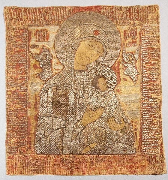 - Камка, шитье серебряными и шелковыми нитями. 25,6 х 26,7