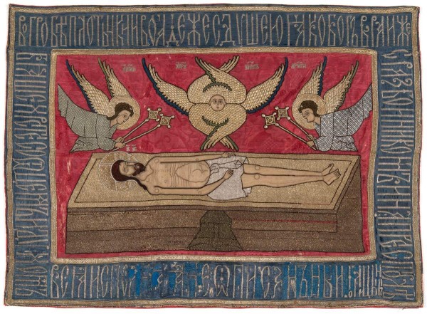 Покровцы и воздух ценились в Вознесенском монастыре, где они были вышиты. В подробном описании монастыря 1894 г. воспроизводится воздух "Христос во гробе". Особое внимание обращается на деталь, характерную для произведений, выполненных под руководством старицы Александры Голицыной: молитвенная надпись, идущая по краю, кончается словом: Голицыны. Так князья Голицыны часто отмечали свои вклады.