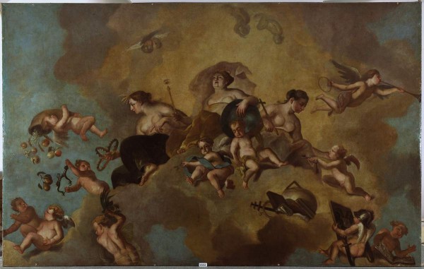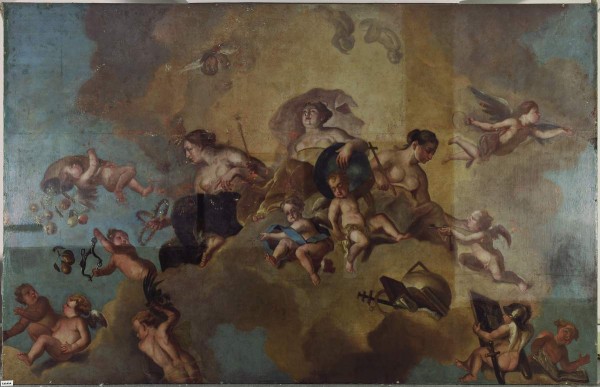 Главная Онлайн ресурсыКоллекцияЖивопись Плафон «Триумф России» Гзель Г. 1673, Санкт-Галлен, Швейцария — 1740, Санкт-Петербург Плафон «Триумф России» 1719 Холст, масло. 237 х 397 ЛД-1 Экспонирование Летний дворец Петра I Открыть панораму зала в виртуальном туре Вторая приемная Период XVIII век КатегорияАллегория Ключевые слова Летний дворец Петра I | мифологические и сказочные персонажи | головные уборы | фрукты, овощи | пища, напитки | музыкальные инструменты | оружие Поделиться «Виртуальный Русский музей» в социальных сетях: