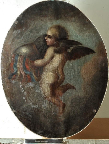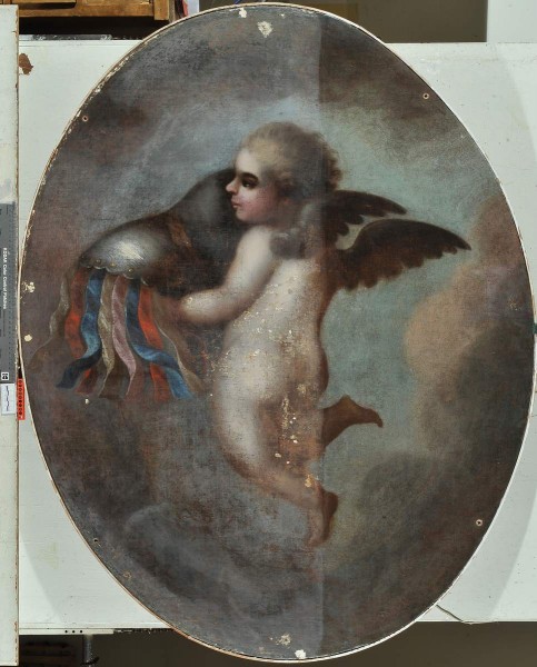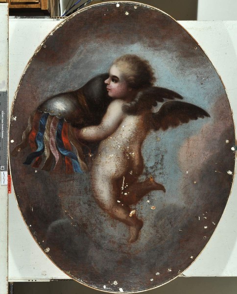 Главная Онлайн ресурсыКоллекцияЖивопись Плафон овальный «Амур, несущий латы» Неизвестный художник Плафон овальный «Амур, несущий латы» Начало XVIII века Холст, масло. 126 х 101 ЛД-14 Экспонирование Летний дворец Петра I Открыть панораму зала в виртуальном туре Кабинет Петра I Период XVIII век КатегорияМифологический сюжет Ключевые слова Летний дворец Петра I | мифологические и сказочные персонажи | военная одежда Поделиться «Виртуальный Русский музей» в социальных сетях: