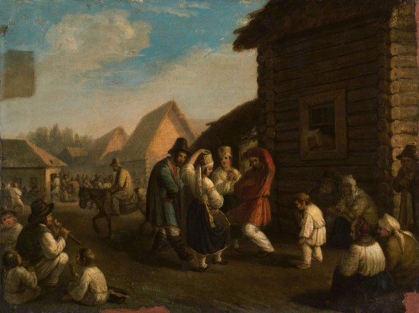 Датирована по стилистическим и технологическим признакам. На картине представлено «деревенское веселье» — сельский праздник (судя по костюму, вероятно, в Рязанской губернии). Характер видимого в инфракрасном свете авторского рисунка, отличающегося графичностью, тщательностью и подробностью, дает основание для предположения о том, что в основе картины, возможно, лежит гравюра или неизвестный оригинал. Однако такая особенность подготовительного рисунка может объясняться и отсутствием у создателя картины систематического профессионального образования.