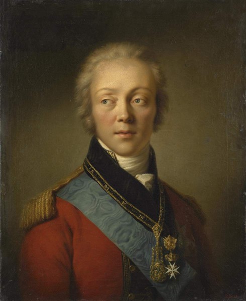 Изображен в мальтийском мундире, с орденами Св. Андрея Первозванного (лента и звезда), Св. Иоанна Иерусалимского (крест и звезда). На золотой цепи на шее неизвестный орденский знак.
