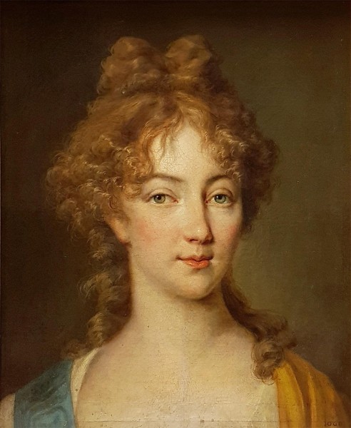 Датирован по форме прически. Изображена с лентой ордена Св. Андрея Первозванного, знаки которого были возложены на нее при коронации в 1801 году. Этот портрет не совпадает ни с одним из известных сегодня иконографических типов. Ближе других он соотносится с миниатюрой работы Ж. А. Пэншона 1801 (Вел. кн. Николай Михайлович. Т. 2. № 127). Однако на миниатюрном портрете — иная прическа (локоны на затылке подобраны), трехчетвертной поворот плеч и, кроме того, отсутствует орден Св. Андрея Первозванного. Размеры портрета не изменялись — кромки холста не обрезаны. Его композиция (оплечное изображение с небольшим фрагментом орденской ленты) необычна для изображения императрицы, что дает основание для предположения, что он является тщательно выписанным эскизом не сохранившегося или неосуществленного большого портрета.