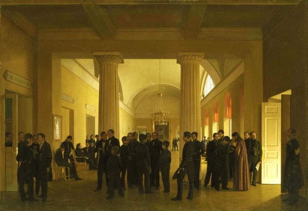 Зал Училища правоведения с группой учителей и воспитанников
